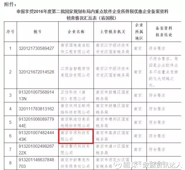 根据《关于软件和集成电路产业企业所得税优惠备案有关事项的通知》(苏财税〔2017〕12号)公示结果,神州信息成员企业华苏科技通过2016年度第二批国家规划布局内重点软件企业认定。